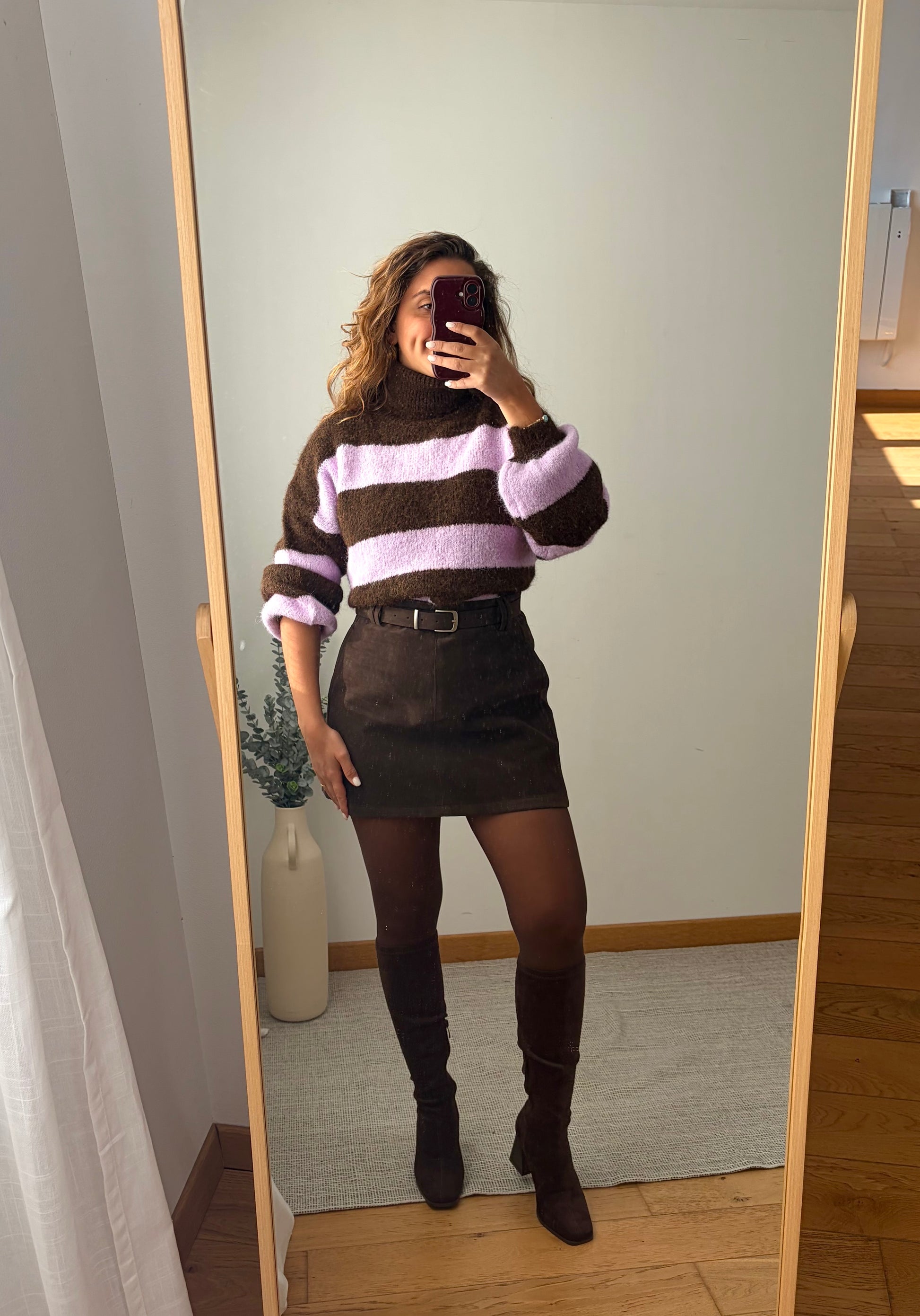 - Pull à rayures violet et marron